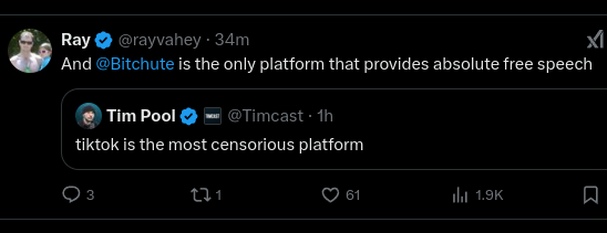 Well, let’s be clear. BitChute doesn’t actually permit porn; but freedom of porn never was the kind of free expression that it actually mattered to protect. Political speech (and ancillary kinds, such as philosophical and cultural commentary) is what matters to protect. And that is precisely the kind that is under the gravest attack today.