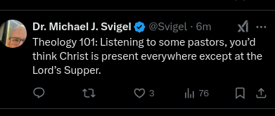 So, what we deny is that there is any change in the substance of the wafers and wine. This is unnecessary to suppose, for a whole variety of theologically and scripturally sound reasons, as of course you know, Dr. Sviegel. But for others, I explain in depth in this video (and its predecessor, but this has the meat of the argument):
